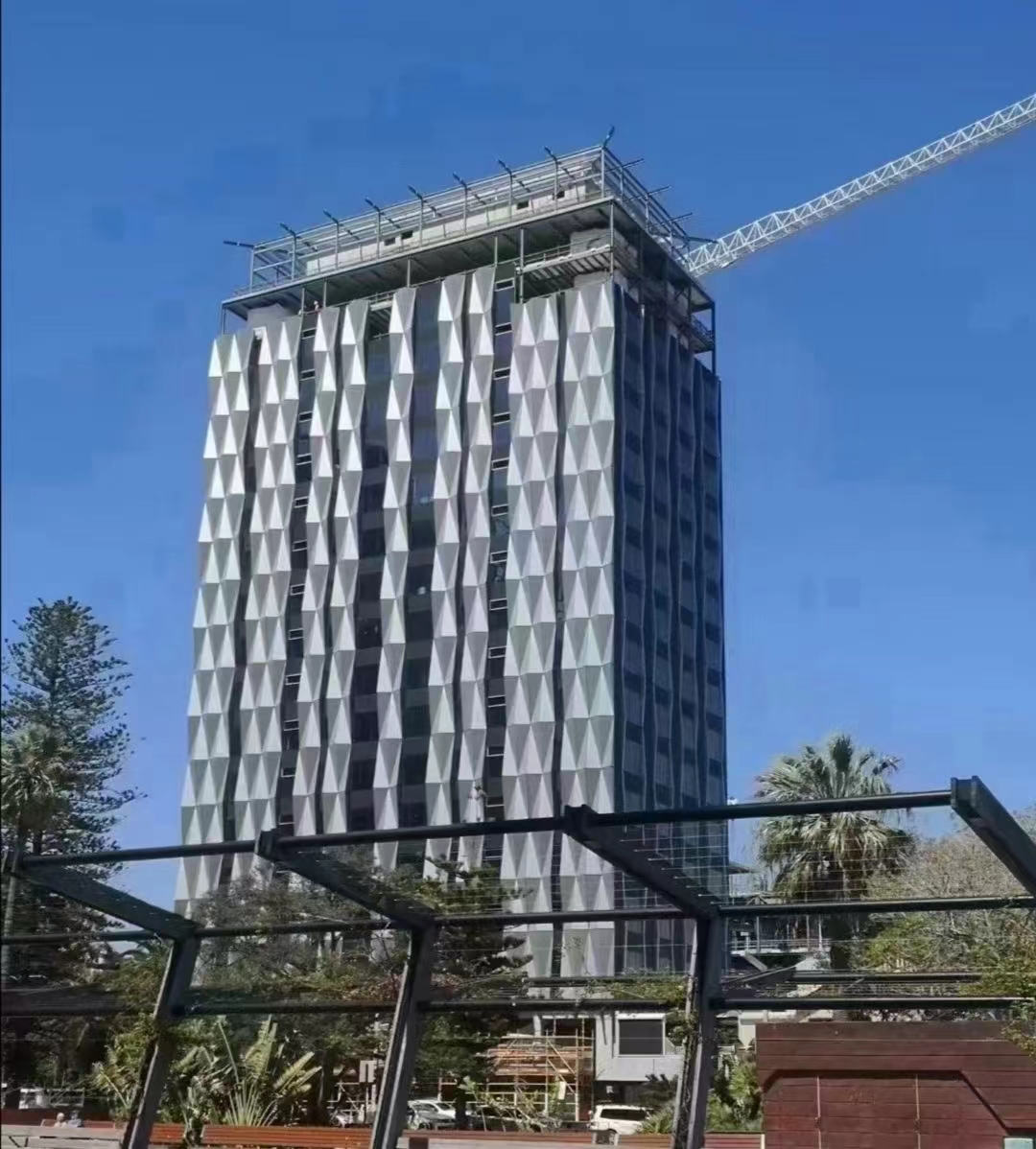 氟碳铝单板外墙铝单板优点:氟碳涂层具有卓越的抗腐蚀性和耐候性,能抗酸雨、盐雾和各种空气污染物,耐冷热性能极好,能抵御强烈紫外线的照射,能长期保持不褪色、不粉化,使用寿命长,是室外装饰的首选材料。