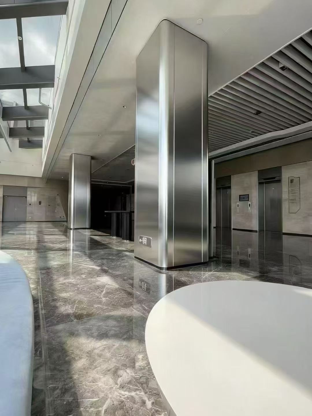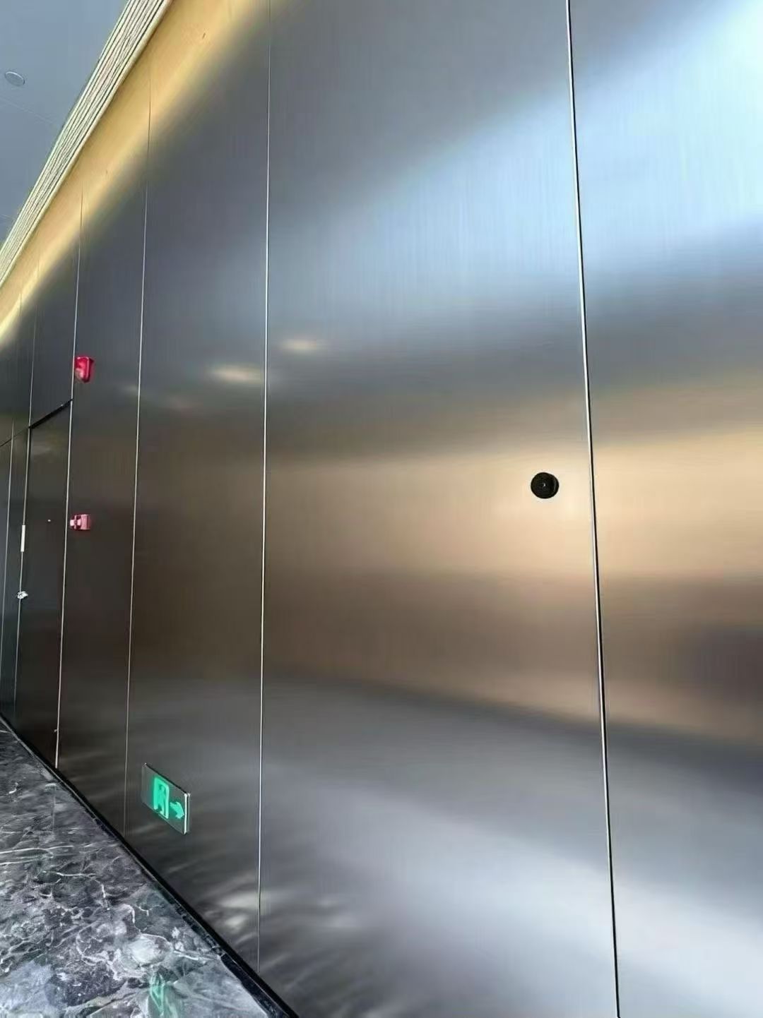 (3)金属感强:经阳极处理的铝板表面硬度高,达宝石级,抗刮性好,表面无油漆覆盖,保留铝板金属色泽,突出现代金属感,提高产品档次和附加值。