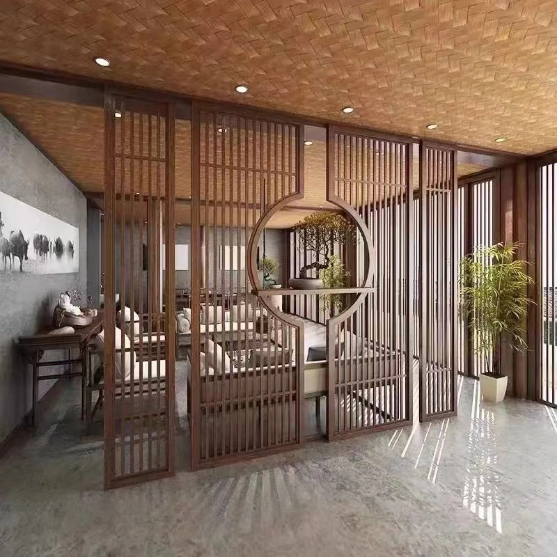 铝屏风、中式风格美观实用,不仅承担了隔断屏风的功能,使居室的空间界线更加明确,而且其镂空设计又具有很好的装饰性,还能通风透气。如今,镂空雕花隔断受到越来越多装修业主的喜爱,成为家装的又一流行趋势。