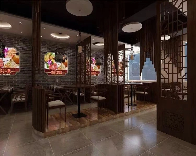 中式风格的客餐厅装修设计古朴而典雅,处处充满传统元素,但又不失现代感和时尚感,中式风格设计选用木纹的铝屏风,与中式风格的装修非常搭配。