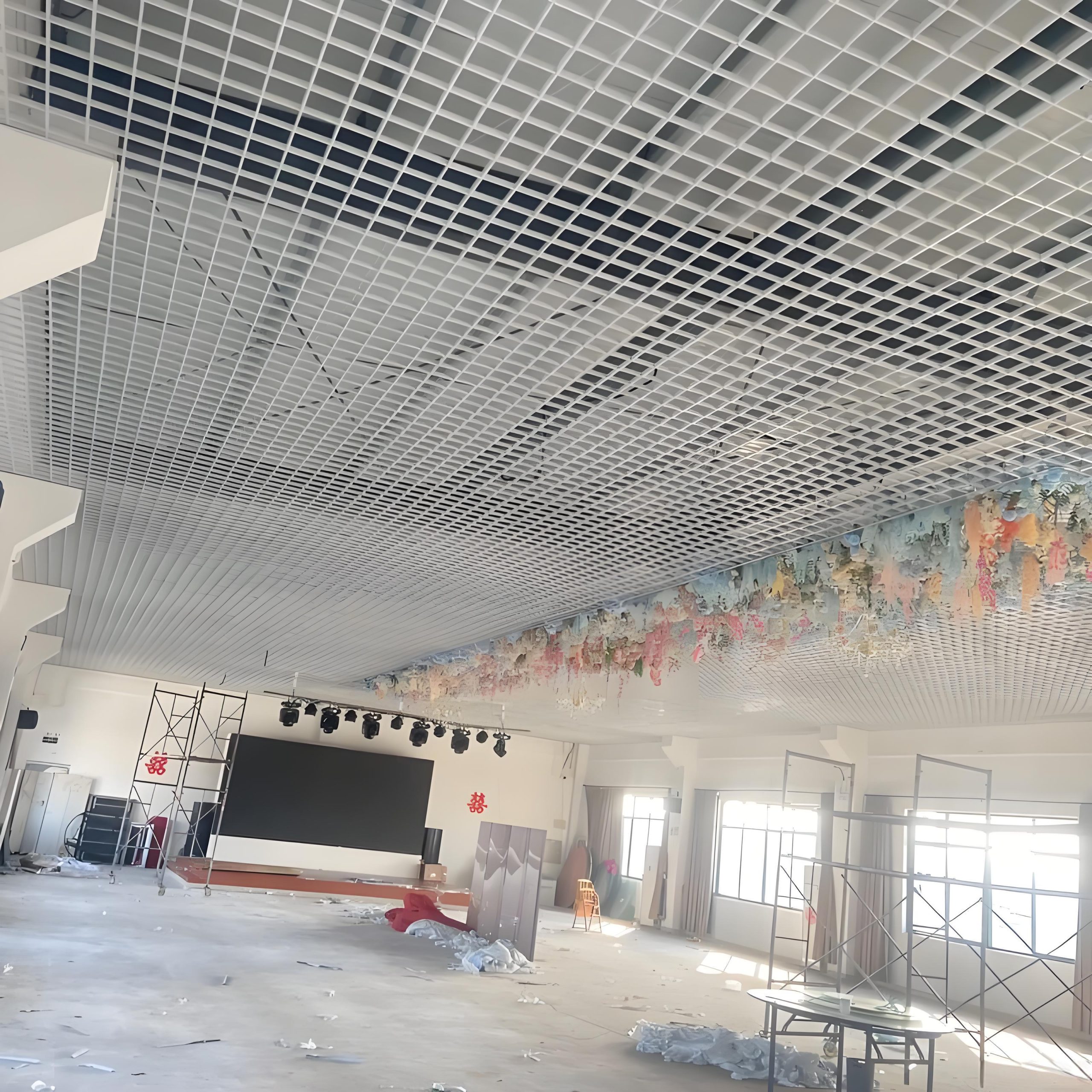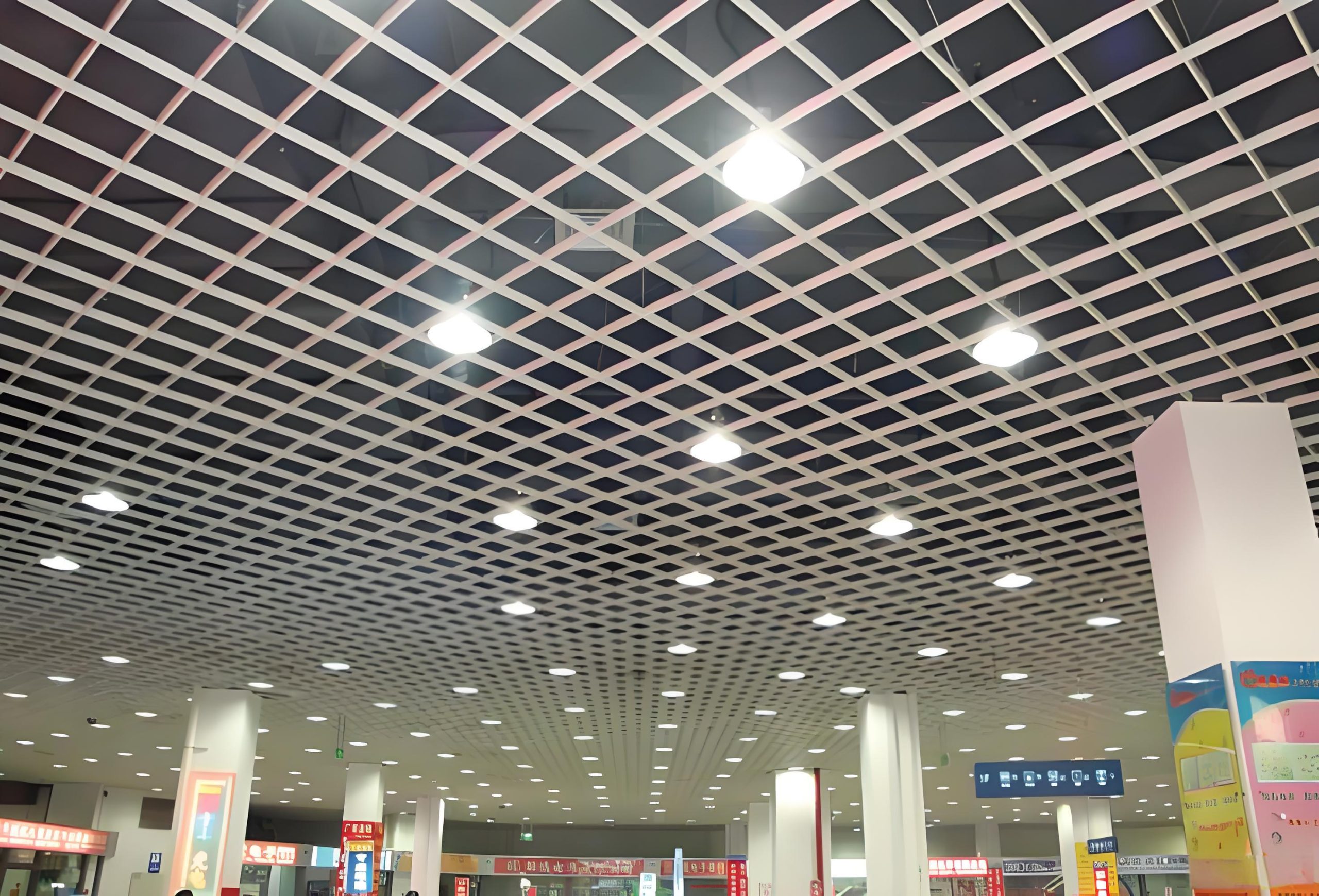 超市:超市的货物摆放密集,需要充足的光线和良好的空气流通。铝格栅吊顶可以让空调系统的冷气更好地循环,保持室内凉爽,其简洁的造型也便于清洁和维护,符合超市的使用需求