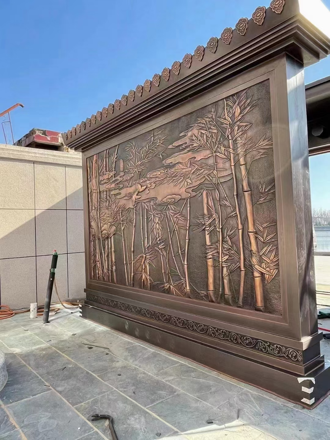 铝浮雕装饰以现代简约美学为基础,融合东方意境与金属工艺,通过轻量化、模块化、高耐久的铝合金材质,实现建筑外立面与室内空间的艺术化、质感化升级。利用铝合金的金属质感、平整度与光影反射特性,通过浮雕凹凸肌理,让墙面在不同光线、角度下呈现层次变化,赋予建筑动态视觉效果。
